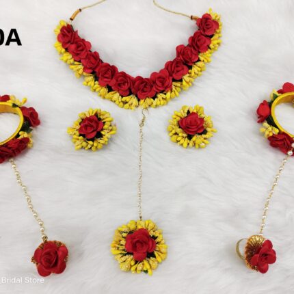 White Rose Bridal Bracelet with Finger Rings – Elegant Haldi & Mehendi Floral Jewellery.