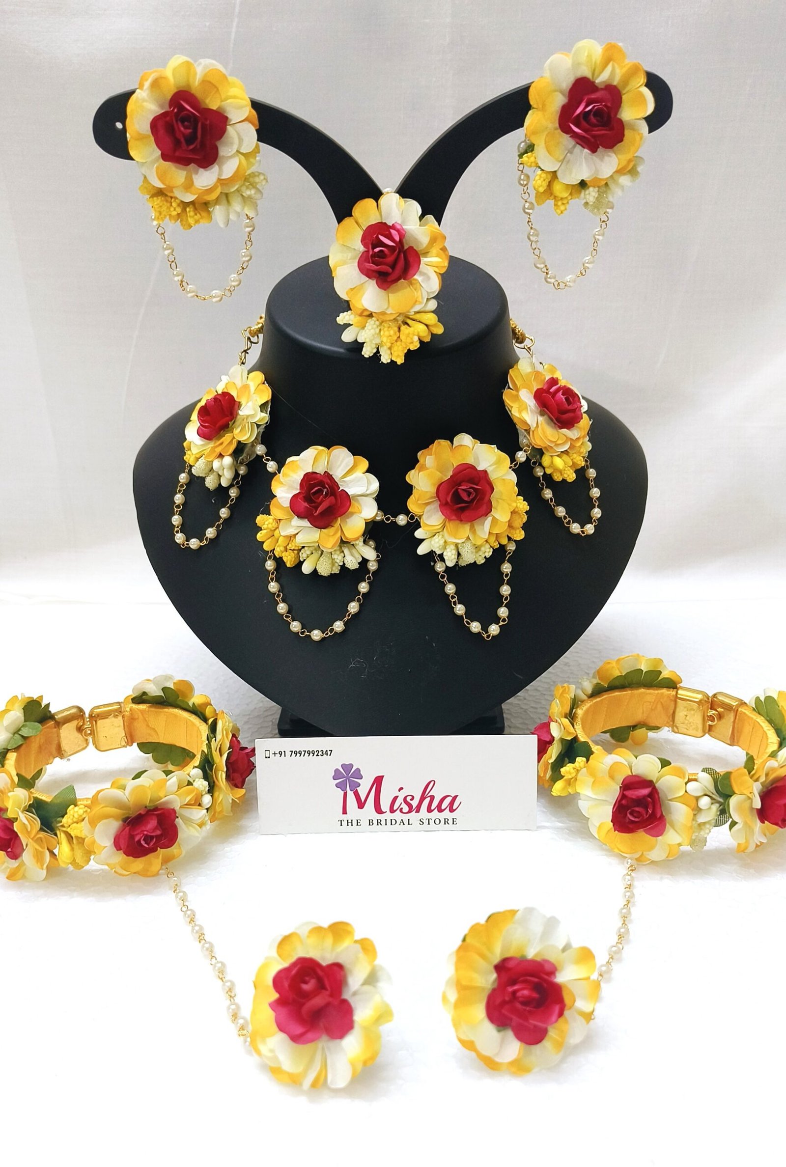 Flower jewellery set for  haldi, mehendi, baby shower, photo shoot.