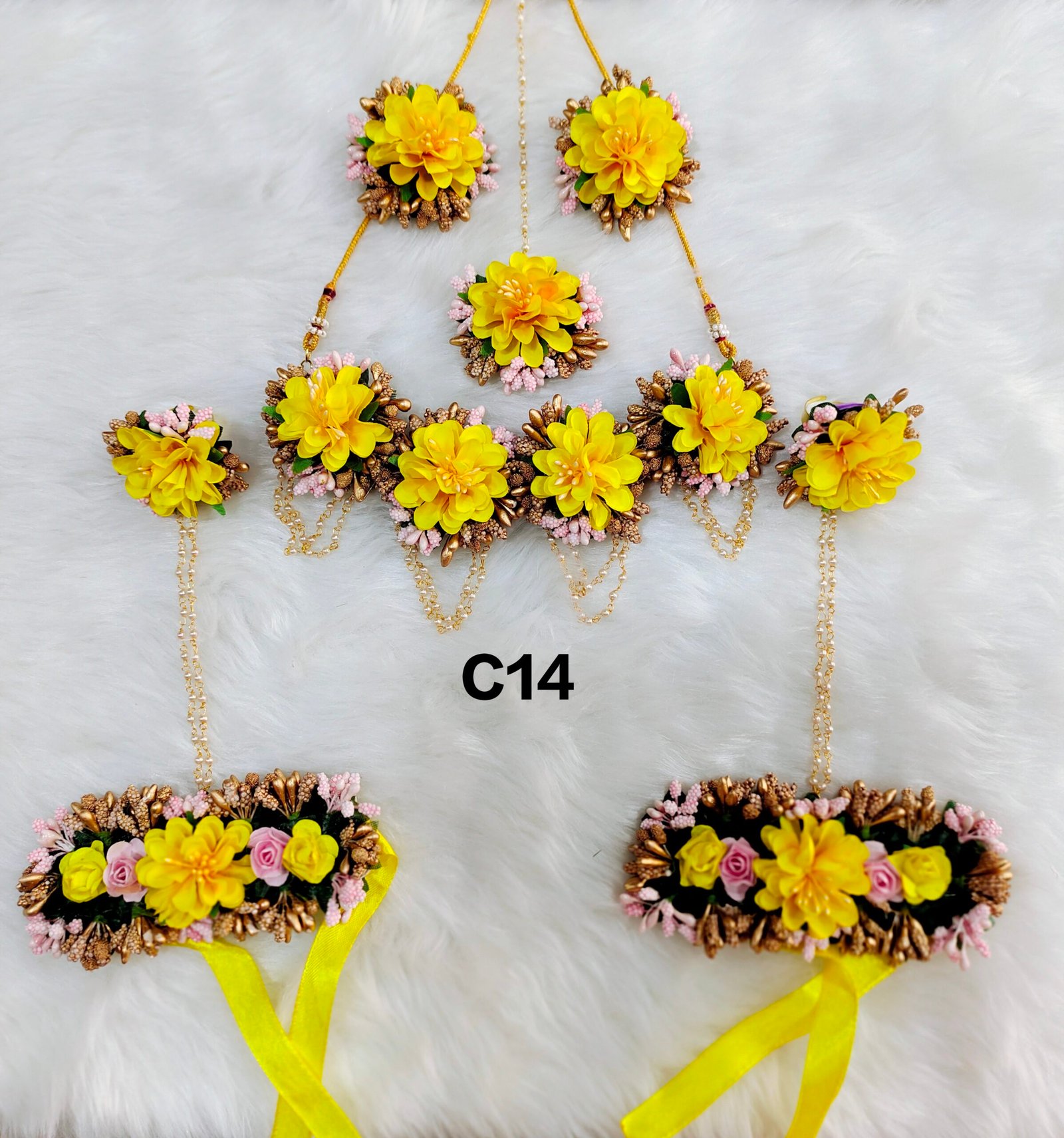 Flower jewellery set for haldi, mehendi, baby shower, photo shoot.
