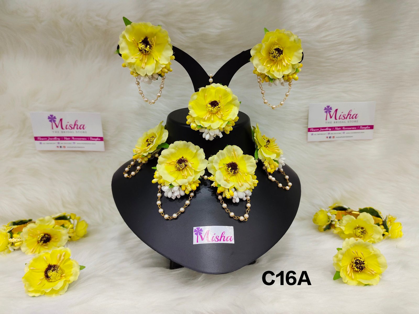 Flower jewellery set for haldi, mehendi, baby shower, photo shoot.