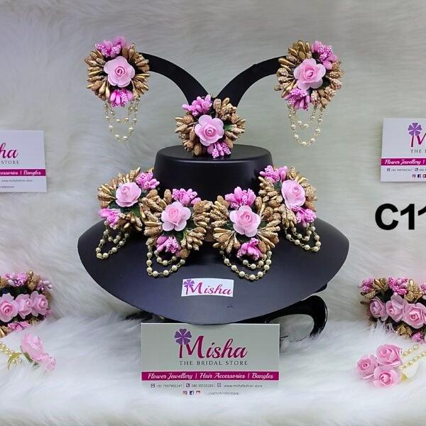 Flower jewellery set for haldi, mehendi, baby shower, photo shoot.
