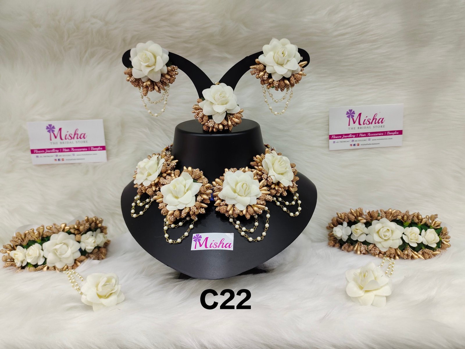 Flower jewellery set for  haldi, mehendi, baby shower, photo shoot.