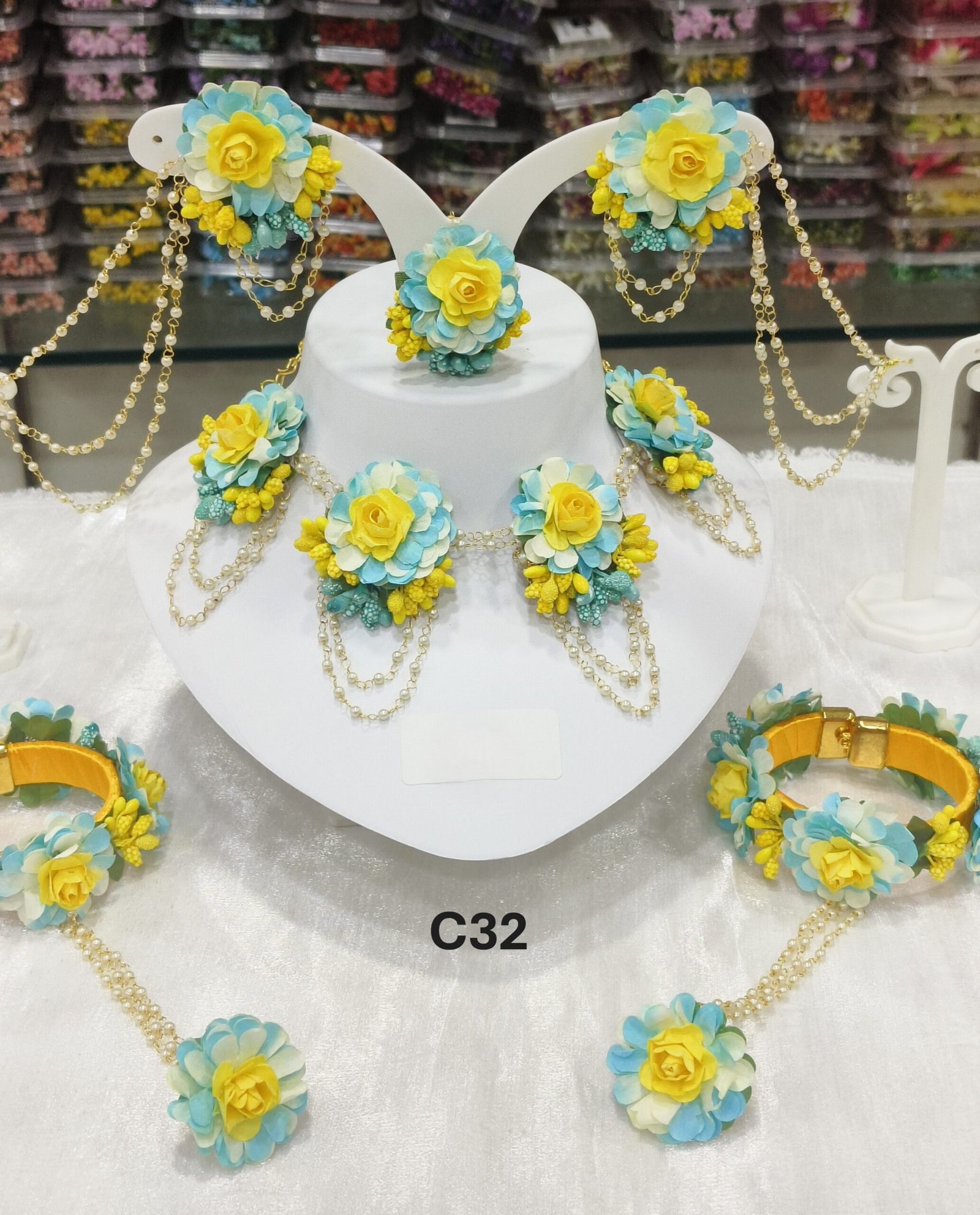 Flower jewellery set for haldi, mehendi, baby shower, photo shoot.