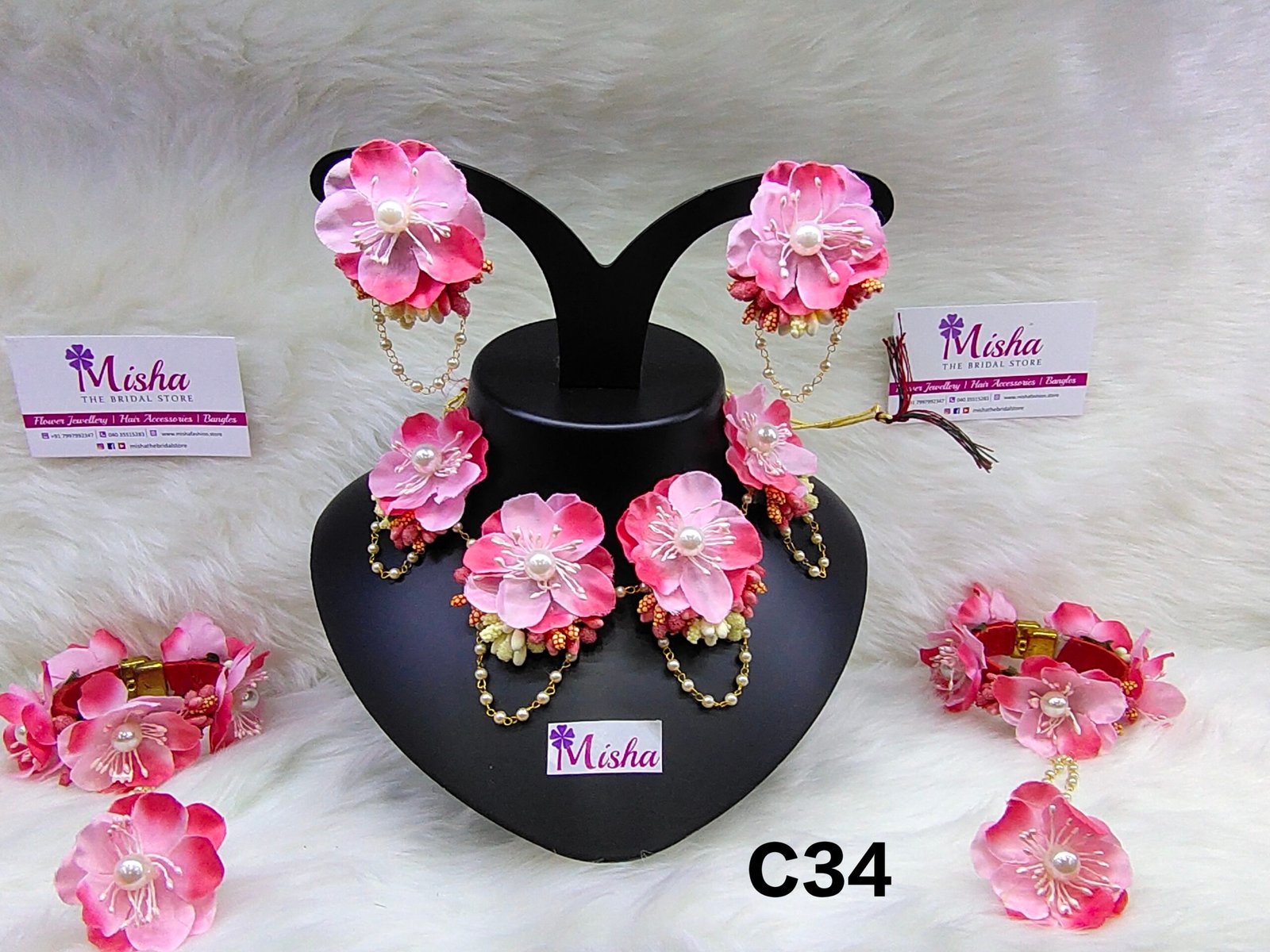 Flower jewellery set for haldi, mehendi, baby shower, photo shoot.