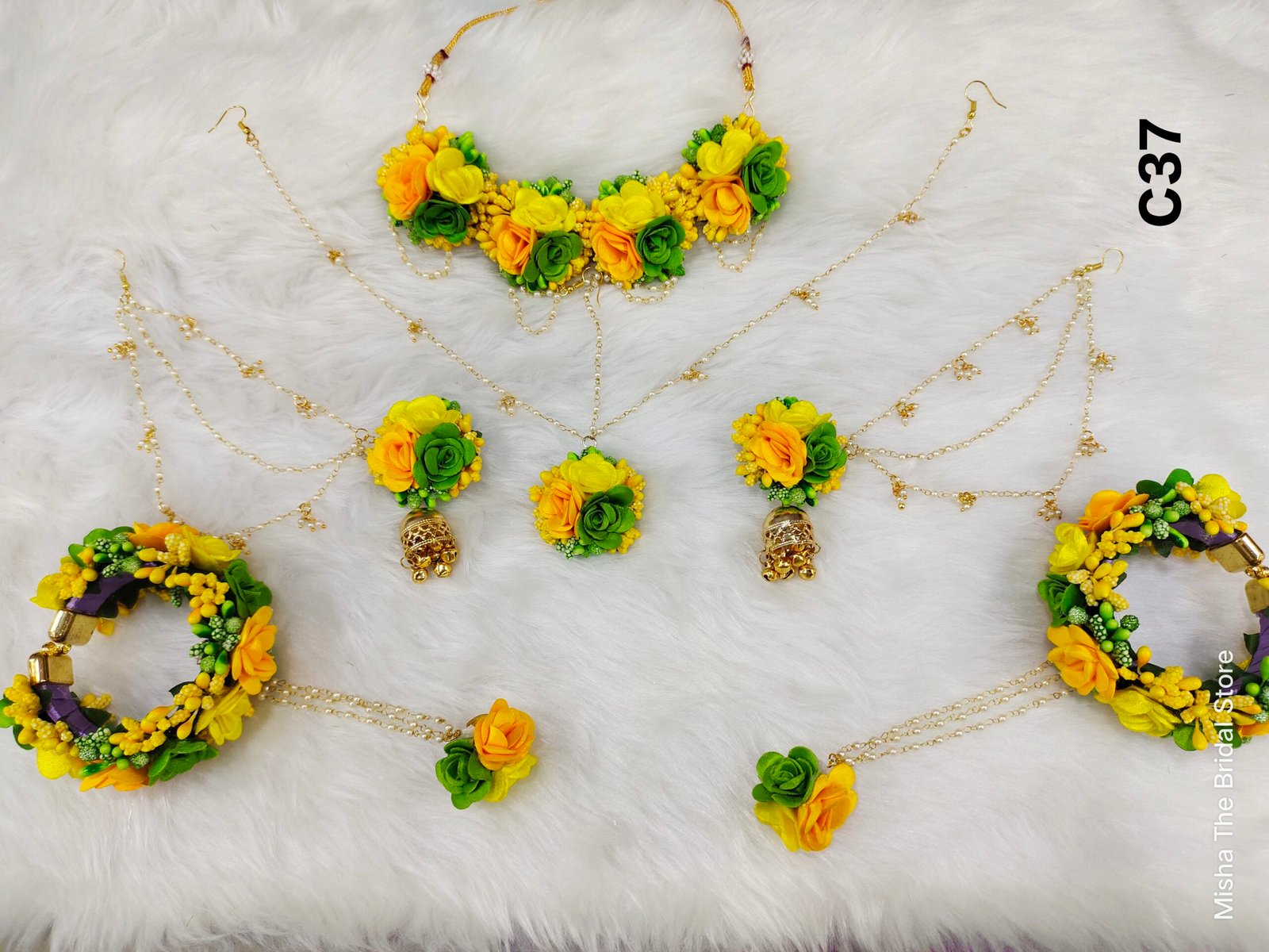 Flower jewellery set for haldi, mehendi, baby shower, photo shoot.