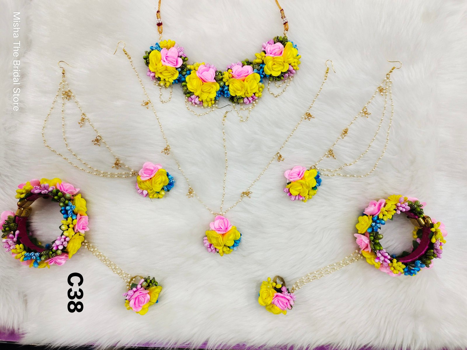 Flower jewellery set for  haldi, mehendi, baby shower, photo shoot.