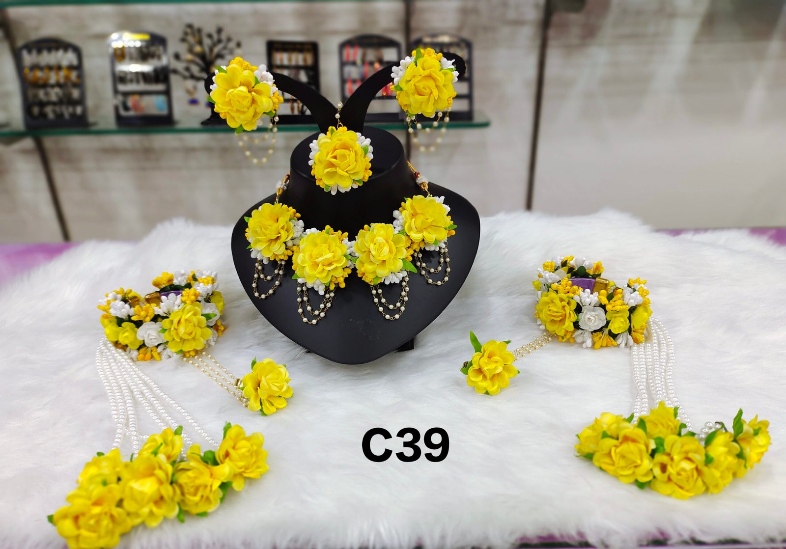Flower jewellery set for haldi, mehendi, baby shower, photo shoot.