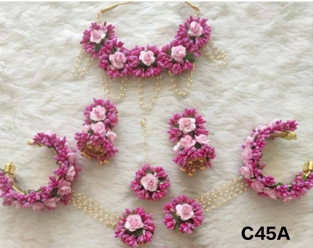 Flower jewellery set for haldi, mehendi, baby shower, photo shoot.