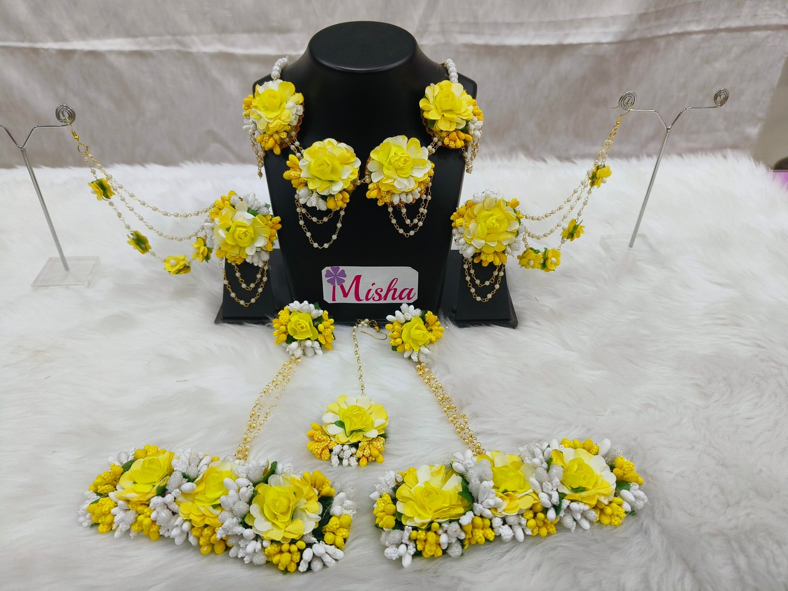 Flower jewellery set for haldi, mehendi, baby shower, photo shoot.
