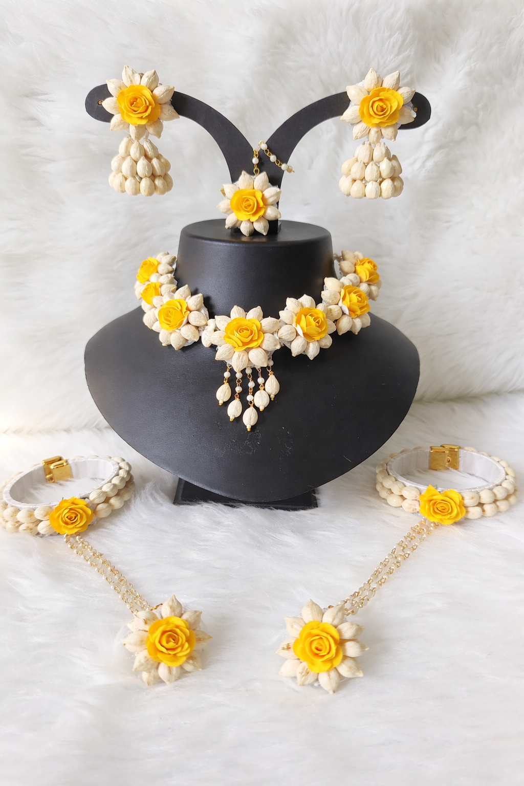 Flower jewellery set for haldi, mehendi, baby shower, photo shoot.