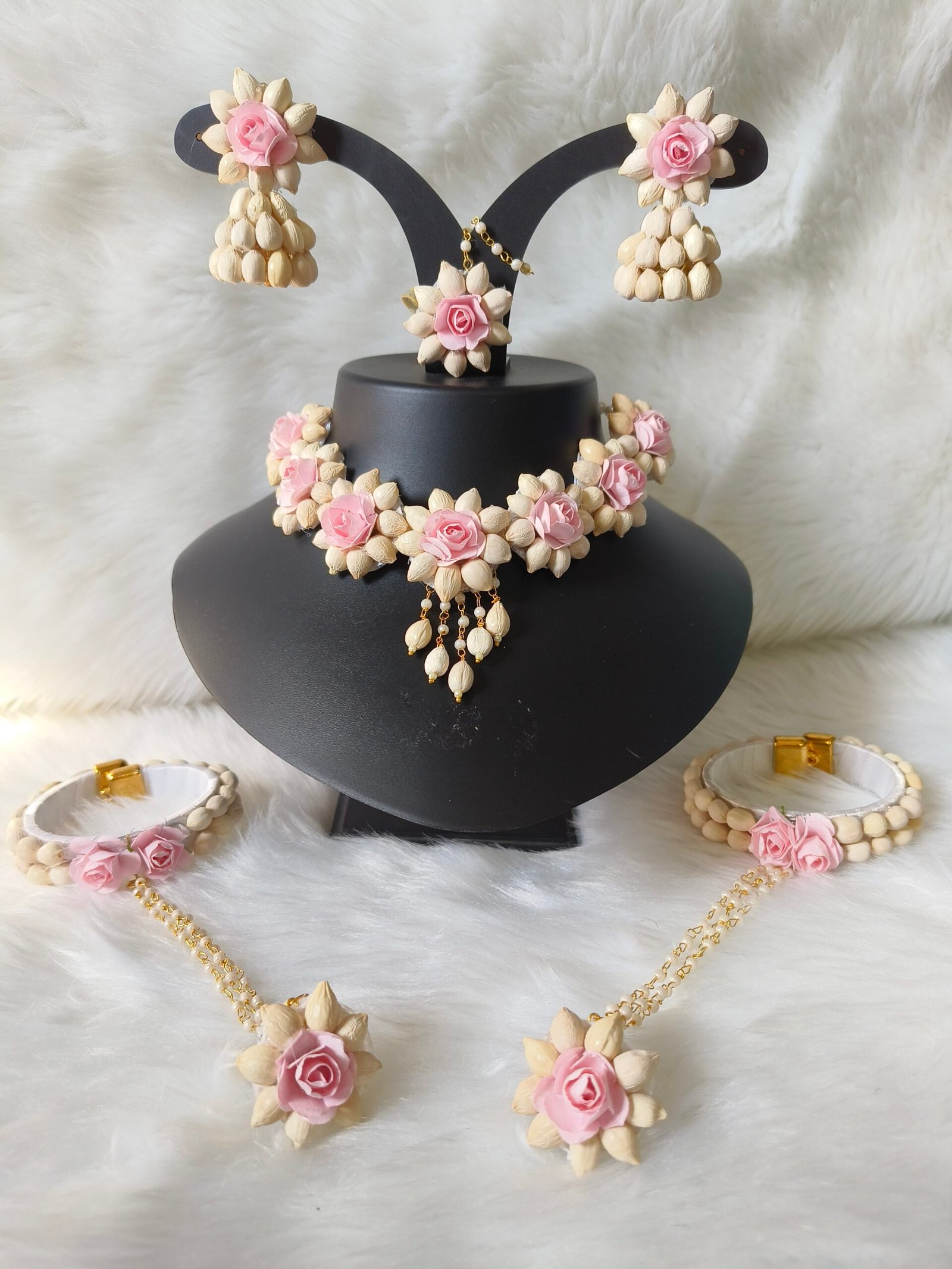 Flower jewellery set for haldi, mehendi, baby shower, photo shoot.