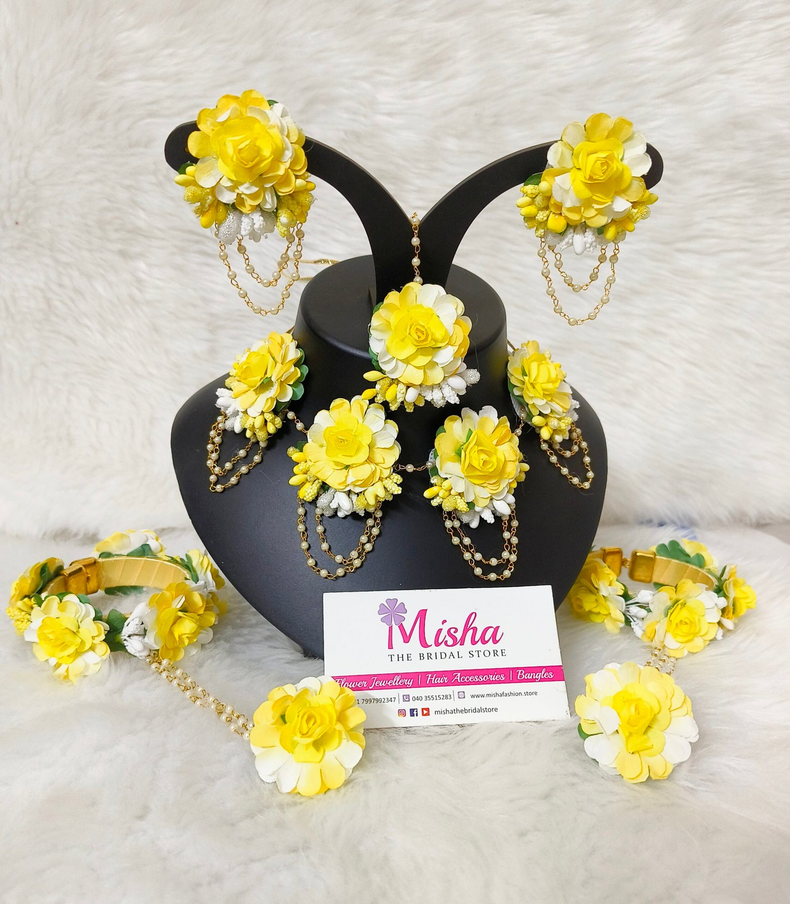 Flower jewellery set for haldi, mehendi, baby shower, photo shoot.