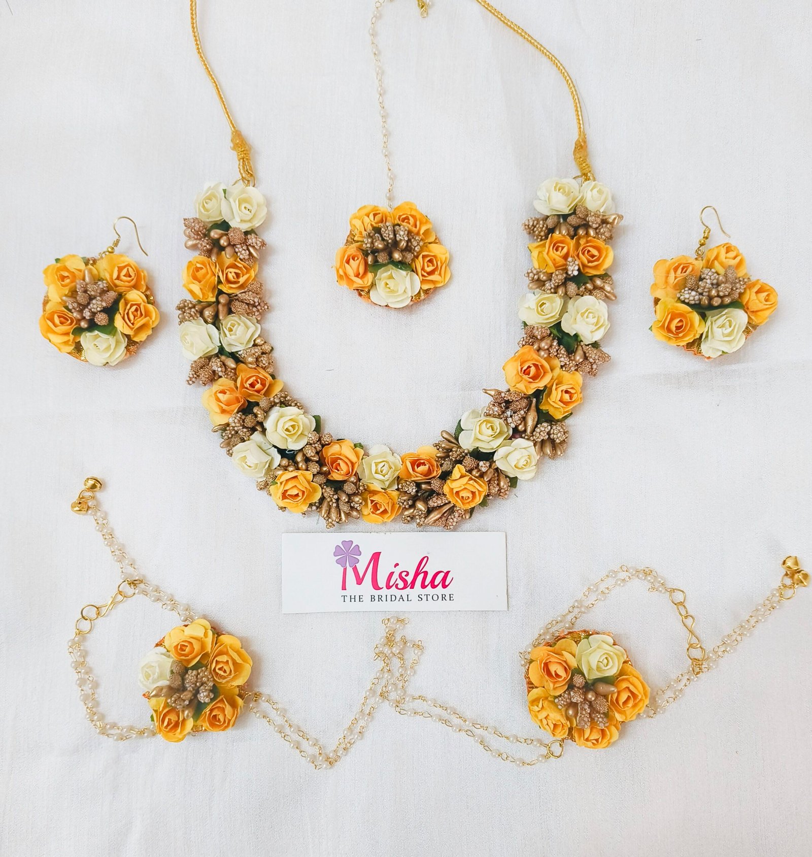 Flower jewellery set for haldi, mehendi, baby shower, photo shoot.