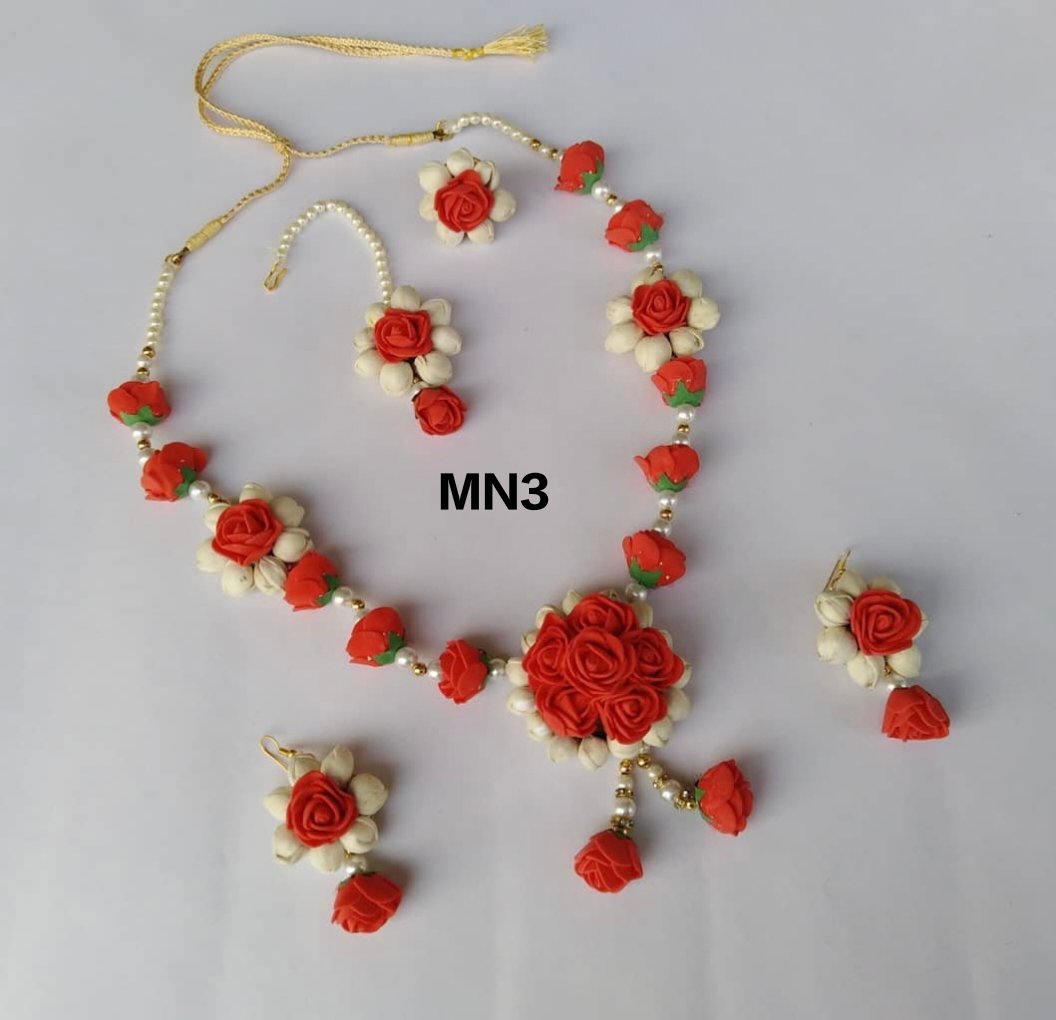 Flower jewellery set for haldi, mehendi, baby shower, photo shoot.