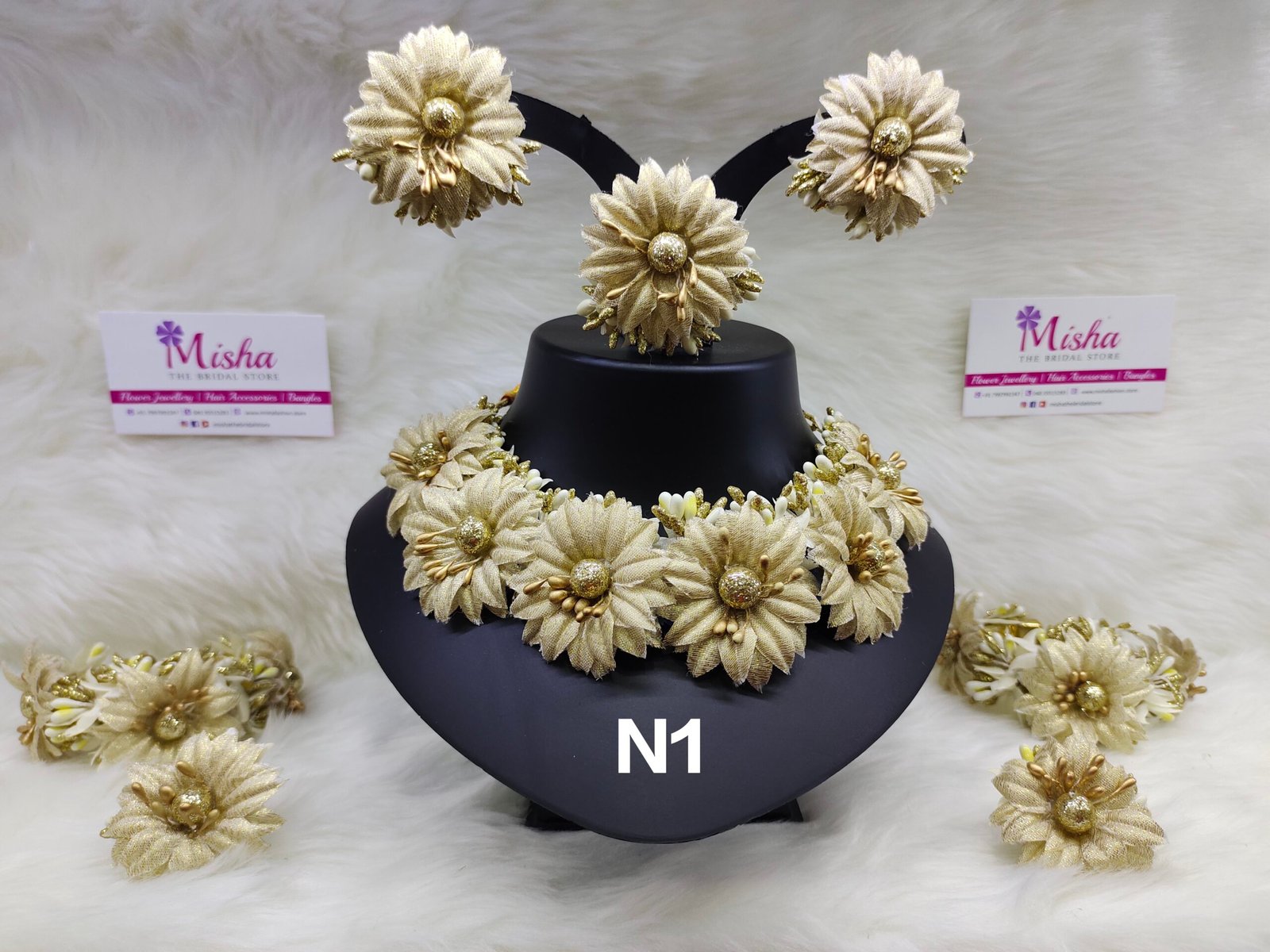 Flower jewellery set for haldi, mehendi, baby shower, photo shoot.