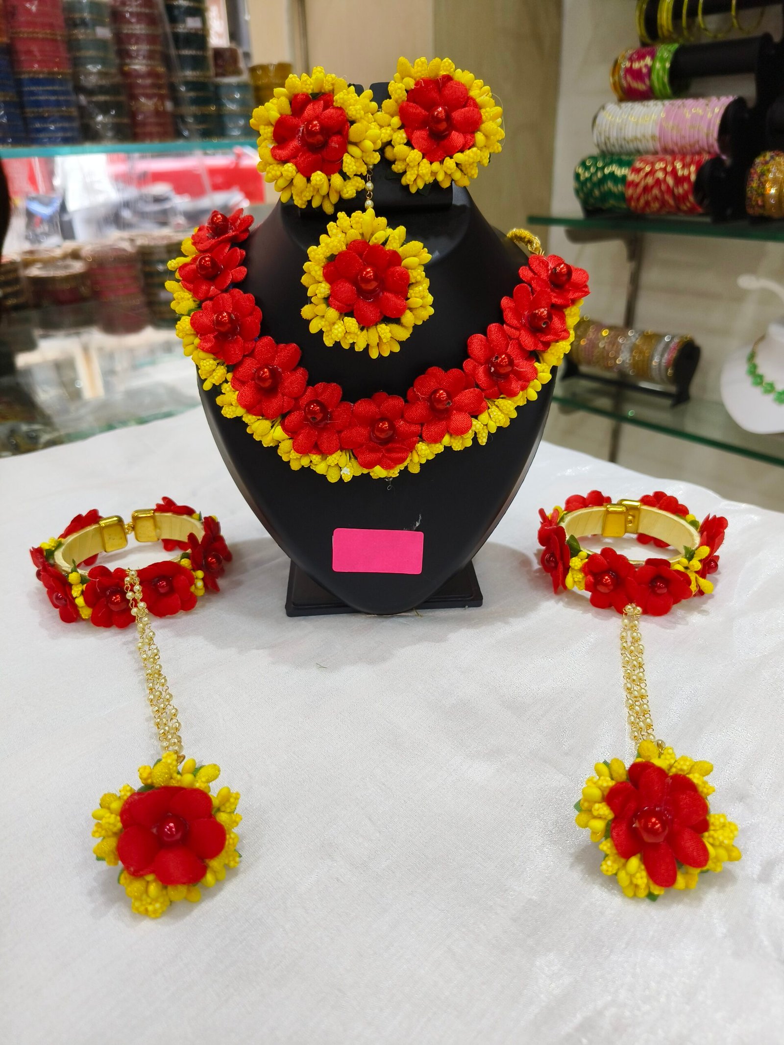 Flower jewellery set for haldi, mehendi, baby shower, photo shoot.