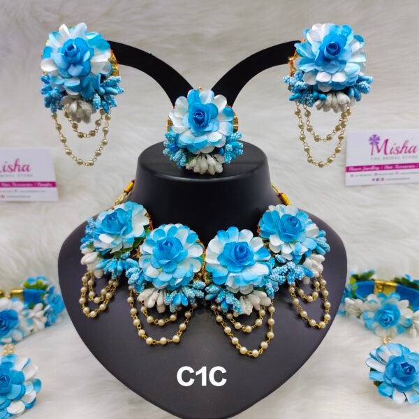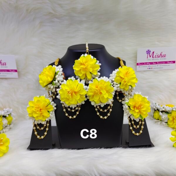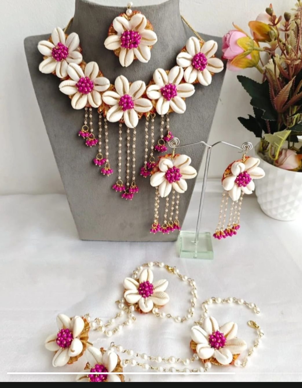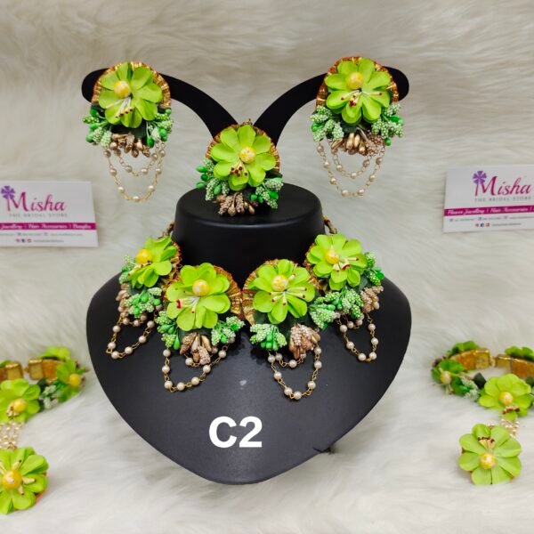 Shell & Flower jewellery set for haldi, mehendi, baby shower, photo shoot.