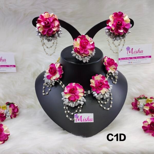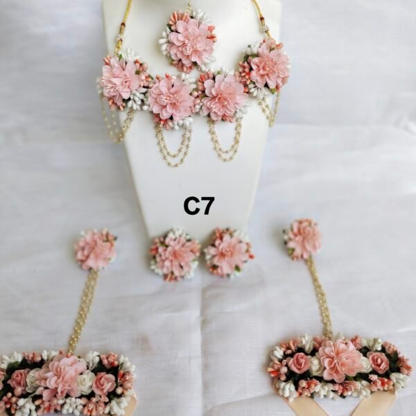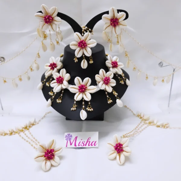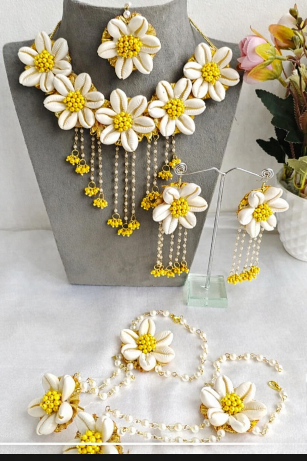 Shell & Flower jewellery set for haldi, mehendi, baby shower, photo shoot.