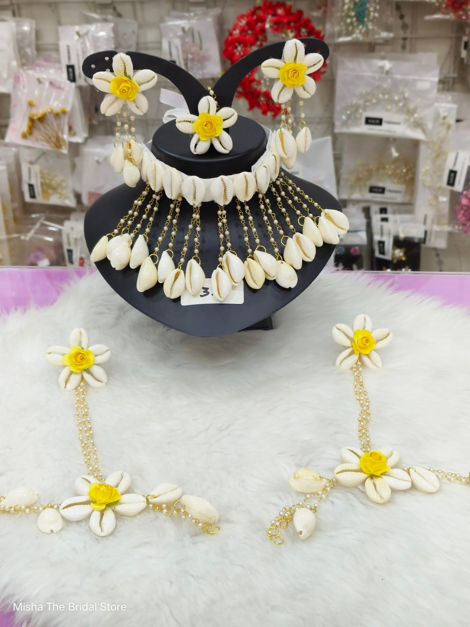 Shell & Flower jewellery set for haldi, mehendi, baby shower, photo shoot.